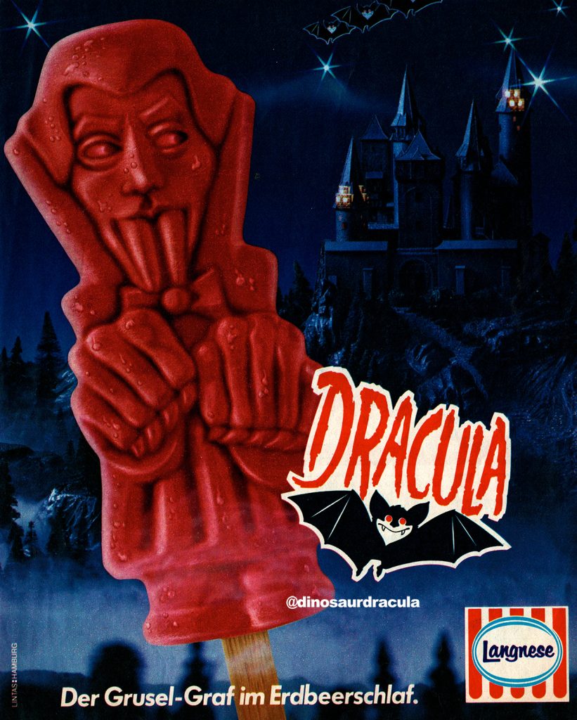 When I tell you that they were a distant cousin of the Vampire’s Secret ice pops I’m always going on about, I mean it. These Dracula Pops were produced by Langnese, which was literally Germany’s version of Good Humor. (Both shared the same parent company, Unilever.)