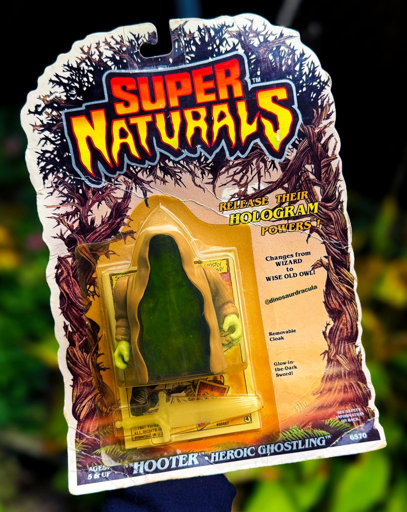 Shown here is Hooter, whose holographic image switches between a wizard and an owl. With Super Naturals, every character had a “normal” mode and then a “spirit” mode, which they could call upon in moments of distress. So like, if you messed with Hooter, he’d switch to owl mode and peck the shit out of you.