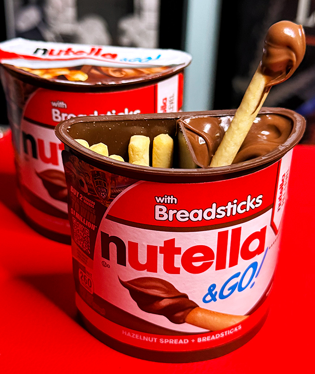 You’ll each get an adorable package of Nutella & Go, featuring separate compartments for the sinfully silky hazelnut cocoa spread, and tiny-sized breadsticks to dip into it.