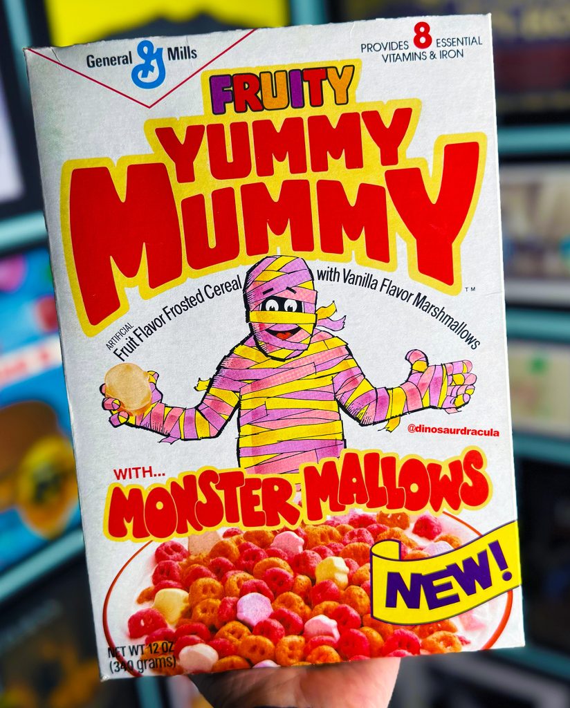 See, the character pictured on this first-edition box was later redesigned with a stouter, more cartoony appearance. Which was the version Target had on their retro boxes. So, if you want the ORIGINAL Fruity Yummy Mummy – tall, lanky and Karloffish – you gotta get a true ‘80s box.
