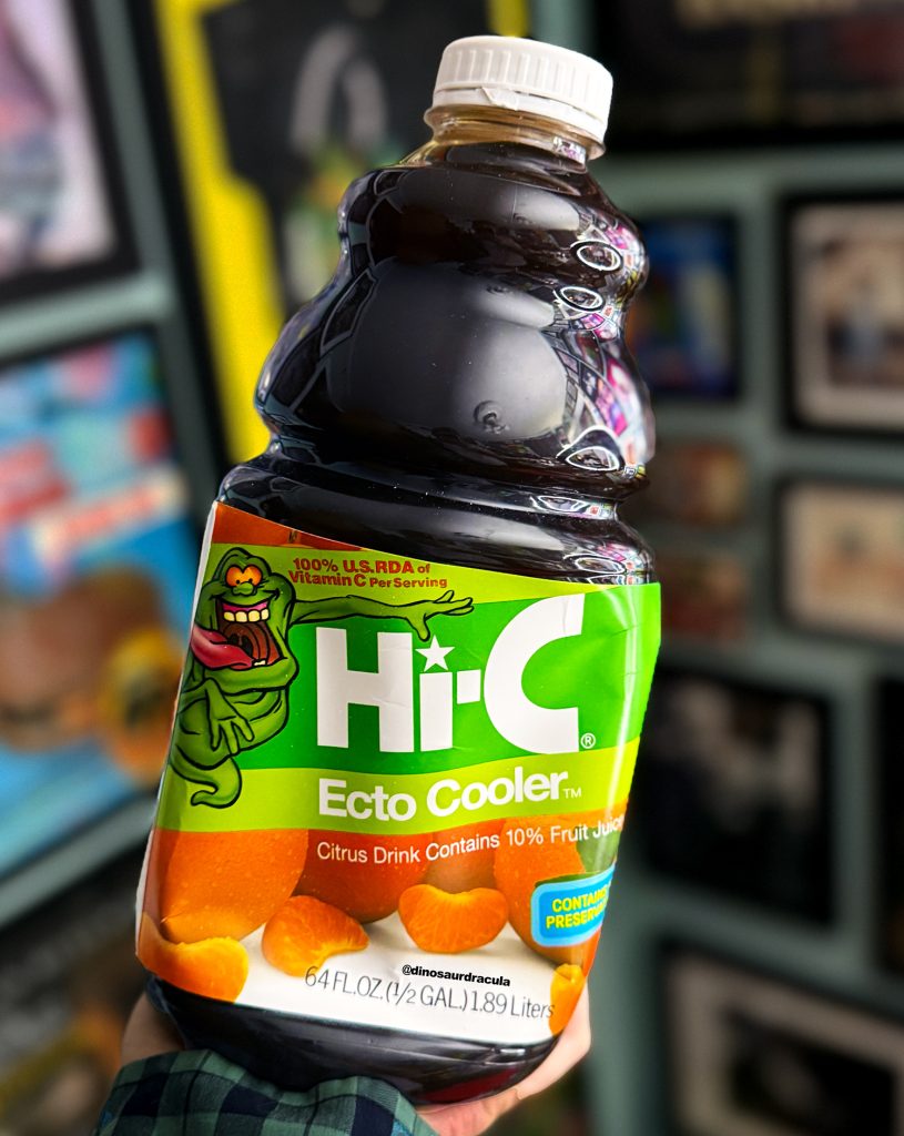 If you think THE BROWNING OF THE ECTO was simply a result of it being trapped in a clear bottle, nah. That certainly could’ve expedited the process, but I’ve emptied old Ecto Cooler juice boxes before, and the once-green drink was this same shade of sewage.