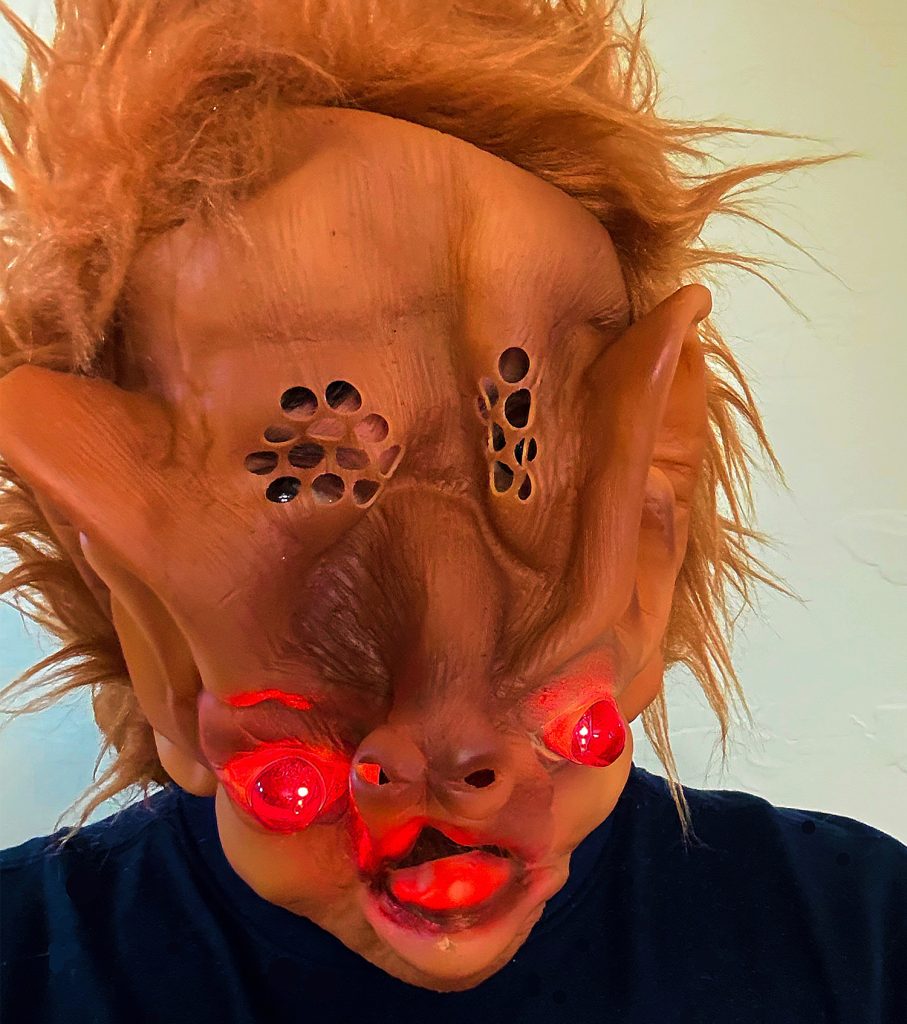 You might be wondering why I never mentioned the light-up eyes in any retellings of my MALPH story. Truth is, I forgot about that little hiccup! The delicate wire connecting the eyes to a 9V battery was already broken when I got my original mask, so they were never part of my ensemble.